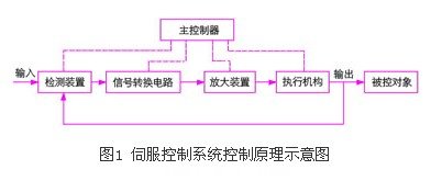 目前電氣伺服控制系統(tǒng)中的主控制器主要是單片機芯片,檢測裝置是各種傳感器,信號轉換電路主要實現(xiàn)a/d轉換功能,執(zhí)行機構通常使用各種力矩電機。其控制原理示意圖可以簡單的用圖1的方塊圖來表示。伺服技術已經發(fā)展為高精確度定位控制,對控制精度的要求越來越高,同時隨著芯片集成技術的提高,電氣系統(tǒng)小型化也成為主流趨勢。