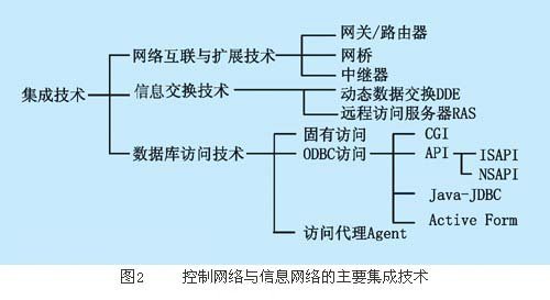 為方便討論問題、現(xiàn)舉例說明。根據(jù)某生產(chǎn)自動(dòng)化改造工程要求,需要對(duì)系統(tǒng)進(jìn)行組態(tài)監(jiān)控操作平臺(tái)設(shè)計(jì),采用組態(tài)軟件ifix2.2和windows應(yīng)用軟件vb6.0,開發(fā)并實(shí)現(xiàn)基于dde機(jī)制的進(jìn)程間數(shù)據(jù)交換,滿足工業(yè)控制網(wǎng)scada工控計(jì)算機(jī)內(nèi)部信息交換需要,為各應(yīng)用程序通過共享內(nèi)存交換信息,實(shí)現(xiàn)控制網(wǎng)絡(luò)與信息網(wǎng)絡(luò)的集成,并為進(jìn)一步進(jìn)行windows程序間的數(shù)據(jù)交換開發(fā)提供有借鑒意義的參考[3]??刂凭W(wǎng)絡(luò)與信息網(wǎng)絡(luò)的主要集成技術(shù)如圖2所示。