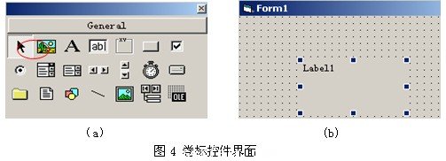 卷標(biāo)控件如圖4(a)所示,該控件專用于顯示文字、數(shù)字用,顯示如圖4(b)所示