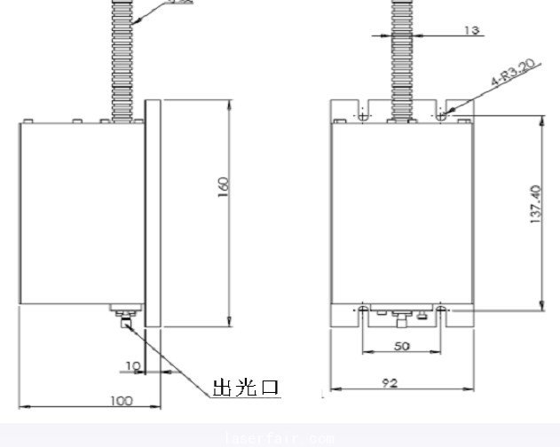 光斑直徑典型值(出光口10cm處) |
