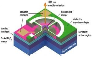 垂直腔面發(fā)射激光器簡(jiǎn)稱VCSEL,是一種半導(dǎo)體,其雷射垂直于頂面射出,與一般用切開的獨(dú)立芯片制成,雷射由邊緣射出的邊射型雷射有所不同。近日,國(guó)外研發(fā)出一種新型可調(diào)諧垂直腔面發(fā)射激光器,為OCT的應(yīng)用創(chuàng)造了新方向。