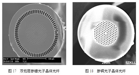 圖18為烽火通信研制的摻鉺光子晶體光纖,該光纖較常規(guī)摻鉺光纖具有更好的抗輻照特性,以及較好的增益特性。