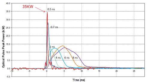 圖2脈寬范圍500ps-10ns可調(diào), 最大峰值功率超過35KW (500ps, 1MHz),
