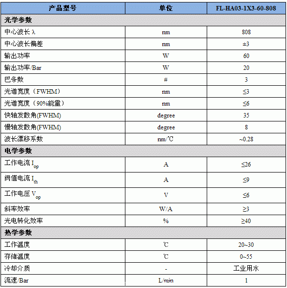 2013年7月,西安炬光科技有限公司宣布推出水冷水平陣列半導體激光器新品。該產(chǎn)品連續(xù)輸出功率為60W,中心波長為808nm(可以擴展其他波長),巴條數(shù)為3個。