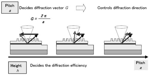 在光子晶體的設(shè)計(jì)上有一些重點(diǎn),有一個(gè)指針是周期。周期和衍射的距離有關(guān),如果周期越小,衍射的距離就越大,縱使經(jīng)過(guò)修正后還是沒(méi)有辦法將光發(fā)射到外面去。相對(duì)的如果周期變大,衍射的距離越小,因?yàn)檫@樣的關(guān)系,光就可以移到外面去了,所以在設(shè)計(jì)上需要找到一個(gè)最適合的周期。