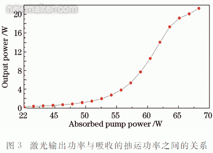 由圖可見,采用888nm抽運(yùn)方式,增益介質(zhì)中最高溫度為349.5K(等價(jià)于808nm抽運(yùn)方式在抽運(yùn)功率為32W時(shí)的最高溫度),比808nm抽運(yùn)方式低72.6K,與此同時(shí),晶體內(nèi)部的溫度分布也比較均勻。這就為單端面抽運(yùn)方式下徑向溫度分布不均勻提供了一種有效的解決方案,從而簡(jiǎn)化了以往雙端面抽運(yùn)的實(shí)驗(yàn)裝置,使單端面抽運(yùn)方式獲得高功率單頻運(yùn)轉(zhuǎn)成為可能。
