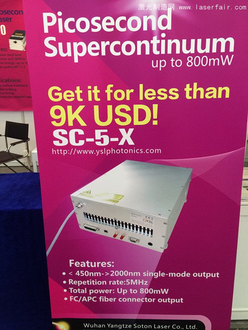 激光制造網(wǎng)消息:為了滿足越來越多的客戶的需求,安揚激光近日推出了一款SC-5-FC的光纖輸出光源,這款光源總功率高達800mw,光譜寬度460~2000nm,選用安揚特有的皮秒種子源,整體構(gòu)造緊湊,操作簡單易維護,F(xiàn)C/PC和FC/APC兩種可選。現(xiàn)在這款光源只需六萬八千,超值首選。