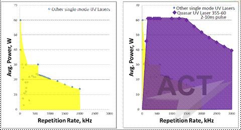 圖2:傳統(tǒng)DPSS調(diào)Q紫外激光器和Quasar可實(shí)現(xiàn)的參數(shù)范圍