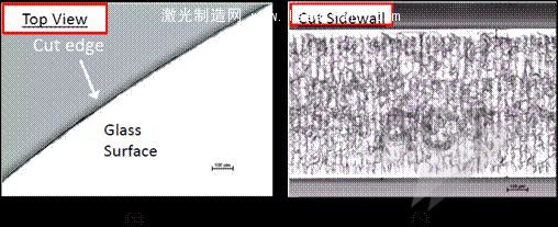 在Spectra-Physics公司的應(yīng)用實(shí)驗(yàn)室中,工程師已經(jīng)利用Quasar激光器的TimeShift技術(shù)所創(chuàng)建的激光與材料之間的相互作用效應(yīng),開(kāi)發(fā)出了玻璃加工工藝。利用Spectra-Physics公司應(yīng)用實(shí)驗(yàn)室正在申請(qǐng)專利的加工過(guò)程,獨(dú)特的激光脈沖減少了熱負(fù)荷、以及材料中可能出現(xiàn)的碎屑或裂紋。在使用Quasar紫外激光器以超過(guò)1.0m/s的直線速度切割康寧Gorilla®、旭硝子Dragontail™和肖特Xensation®等一些化學(xué)強(qiáng)化玻璃時(shí),均獲得了較高的切割質(zhì)量。在切割鈉鈣玻璃以及康寧 Willow®等先進(jìn)的柔性玻璃時(shí),也獲得了類似的高切割質(zhì)量;目前工程師正在進(jìn)行切割藍(lán)寶石的工藝開(kāi)發(fā)工作。圖8顯示了切割0.7mm厚的Gorilla玻璃所獲得的切割效果,該玻璃具有40mm深的化學(xué)強(qiáng)化層(DOL)。俯視圖顯示了干凈的切割邊緣,具有最小的切割碎屑,并且沒(méi)有明顯的微裂紋產(chǎn)生。從切割邊緣的側(cè)面圖中可以看到,其切割粗糙度位于典型制造要求所能接受的范圍之內(nèi)。