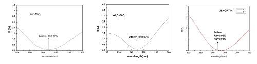 圖1. 兩種材料組合制備的248nm增透膜的光譜曲線