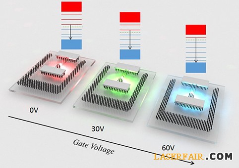 通過(guò)柵極電壓調(diào)控發(fā)光波長(zhǎng)的機(jī)制圖。