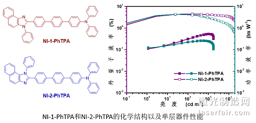 該工作對(duì)同分異構(gòu)體間發(fā)光和載流子注入性能差異的研究對(duì)有機(jī)電致發(fā)光領(lǐng)域有較重要的揭示作用。
