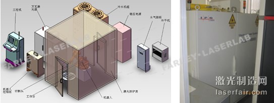 圖1 激光加工系統(tǒng)模型(左)和萬瓦激光器(右)