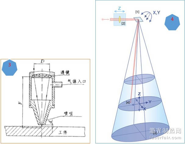 1 激光焊接頭;2 激光釬焊頭;3 激光切割頭;4 激光掃描焊接頭光束原理