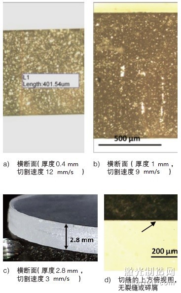 圖10 用QCW準(zhǔn)連續(xù)激光器切割不同厚度的藍(lán)寶石部件