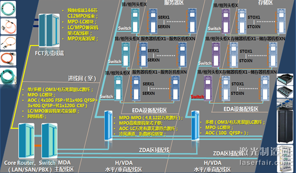 云承載IDC建設方案 地質與氣候狀況評估、建筑美學理念、基礎加固與柜基分離抗震設計;階梯配電、系統(tǒng)容災與綠色能耗管控理念;數(shù)據承載吞吐量能仿真設計、物理空間冗余排布優(yōu)化;傳統(tǒng)、密集、光電一體化連接設計;IDC故障定位、位置導引、智慧巡視、無人值守。云系統(tǒng)互聯(lián)方案 ‘云互聯(lián)’ODN網絡新架構:‘云’‘管’‘端’,基于互聯(lián)網絡架構下的云內連接、管間連接、端面連接整體解決方案。云計算中心整體布線方案 全面涵蓋萬兆DAC直連電纜、多通道密集型插拔式MPO、光電集成有源光纜AOC,面向未來電-光演進的連接重構靈動理念,同時基于MCF(多芯光纖)連接波導預研方案布局下一代數(shù)據中心連接系統(tǒng)。