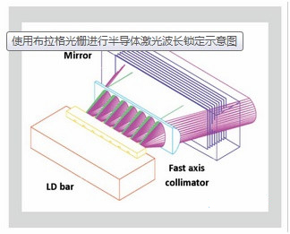 國(guó)內(nèi)外對(duì)半導(dǎo)體激光器的光譜特性及其穩(wěn)定性技術(shù)有多年的研究,但是半導(dǎo)體激光器輸出功率較低,對(duì)其波長(zhǎng)進(jìn)行鎖定的技術(shù)不能應(yīng)用到高功率激光器陣列中。但近年來(lái),反射式體布拉格光柵(RBG)被應(yīng)用于高功率半導(dǎo)體激光器的波長(zhǎng)穩(wěn)定和光譜壓縮,取得了明顯的效果。可參考L.Glebov和V.Smirnov的《Continuous Wave,30W laser-diode bar with 10GHZ linewidth for Rb laser pumping》和 張雪、李強(qiáng)老師的體布拉格光柵外腔實(shí)現(xiàn)激光二極管同相模輸出。請(qǐng)參考圖1、2