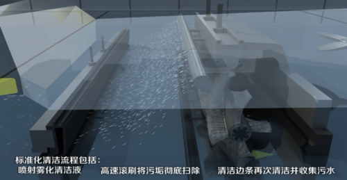 具體到清潔效果,張華龍表示,清潔效果比人工要好。ispider采用螺旋槳推動清洗機器人,并保持一定的壓力,使其可伸縮的毛刷工作臂與待清洗面接觸,由內置驅動裝置驅動毛刷輥子高速旋轉擊打清洗面,配合噴水軟化和沖洗污垢。這樣即保證清洗力度,又可以提高移動速度,提高效率。