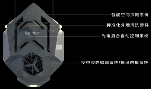 ispider的控制系統(tǒng)由 10 個 CPU 組成神經元系統(tǒng),以最快 200HZ 的反應速度,管理觸覺,姿態(tài),方向,速度,風壓,識別等 50 多個傳感器,以及 40 多個執(zhí)行清洗和姿態(tài)控制的微型數(shù)字電機。在控制系統(tǒng)的保證下,ispider 可以像壁虎一樣牢靠地吸附在墻面工作,也能像飛行器一樣在強風中保持自身的姿態(tài)和安全。