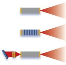 QC激光器的基本結(jié)構(gòu)包括FP-QCL(上圖)、DFB-QCL(中圖)和ECqcL(下圖)。