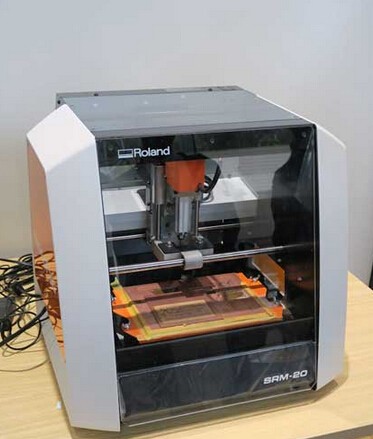 電氣工作區(qū)現(xiàn)在配備的測(cè)量裝置比較少,看上去還比較單薄,但也有亮點(diǎn),就是電路板加工機(jī)。其原型是羅蘭DG(Roland DG)的3D切削加工機(jī)“SRM-20”,由經(jīng)營(yíng)定制品的初創(chuàng)企業(yè)PCB Milling“改造”成了切削覆銅板制作電路板的加工機(jī)。