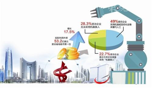 49%受訪企業(yè)采用機器或自動化設(shè)備來替代人工,22.7%受訪企業(yè)表示今年正在準(zhǔn)備采用“機器換人”。對于自動化所帶來的效益,有企業(yè)表示,與之前相比,生產(chǎn)成本甚至可以降低一半。