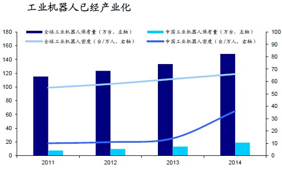 勞動力成本的上升,讓機器取代人成為一種必然趨勢。據(jù)統(tǒng)計,中國制造業(yè)從業(yè)人員平均工資由2003年的12671元上升至2014年的51369元,增幅達到305.41%,教育從業(yè)人員工資由2003年的14189元上升至2014年的56580元,增幅達到298.73%。僅十年的時間,中國勞動力成本上升了3倍多,中國的人口紅利逐漸減少,放眼全球,歐美等發(fā)達國家早就已經(jīng)開始了機器取代人的產(chǎn)業(yè)化歷程,預(yù)計未來傳統(tǒng)工業(yè)服務(wù)及新興產(chǎn)業(yè)發(fā)展過程中,機器取代人會成為必然趨勢,助推服務(wù)機器人成熟產(chǎn)業(yè)化進程。