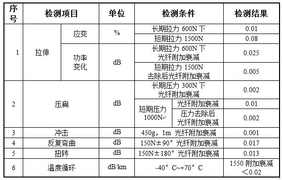下表為我們開發(fā)的FT-Dry全干式光纜GYFS(FT-DRY)-72B1.3的各項(xiàng)測試數(shù)據(jù)