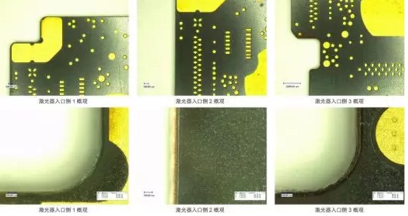 SiP 切割的工藝優(yōu)化也能達(dá)到類似的效果(圖 5 和 6)。具體來說,通過設(shè)定最高的脈沖能量(125 µJ)獲得了最佳的效果。對(duì)于厚度為 1.2 mm 的基板,切割速度大于 10 mm/s。S1 樣本的周期時(shí)間為10.3 s(用在智能手表中的 SiP)。同樣,其切割質(zhì)量幾乎完美,產(chǎn)生的碎屑少到足以簡(jiǎn)化清理步驟,甚至無需后續(xù)清理。