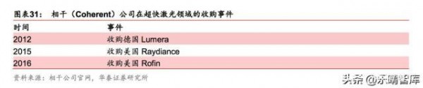 2010年以來,各激光行業(yè)龍頭爭先收購了具有超快激光技術的中小型公司和科研機構(gòu),完善了超快激光的制造技術,制造成本也有所降低,超快激光開始走向市場。激光行業(yè)龍頭通過不斷并購和持續(xù)研發(fā)的雙驅(qū)動模式,成功把握了超快激光市場的主導權(quán)。