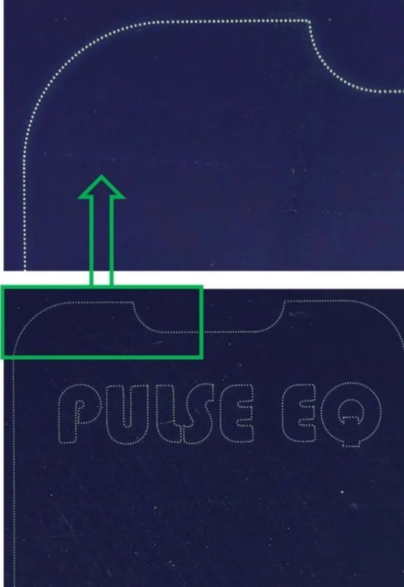HyperRapid NXT用于5G LCP天線切割和鉆孔。左圖所示的高切割質(zhì)量必須通過Hyper Rapid NXT的Pulse EQ技術(shù)實(shí)現(xiàn)