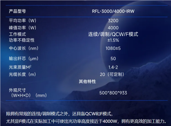 硬核參數(shù):最大平均功率3200W,峰值功率4000W,薄板切割能力優(yōu)勢明顯。