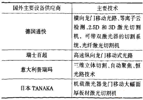表l 國(guó)際代表性激光切割(laser cutting)設(shè)備制造商主要技術(shù)