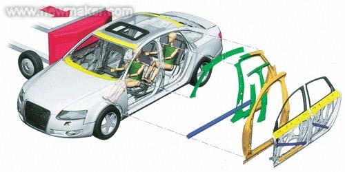 奧迪A6的車(chē)身強(qiáng)度和鋼度一直備受贊揚(yáng),國(guó)產(chǎn)全新奧迪A6L在原有基礎(chǔ)上進(jìn)行了再次改進(jìn):采用了激光拼焊技術(shù)的車(chē)身設(shè)計(jì)(如圖3)。新奧迪A6L經(jīng)過(guò)強(qiáng)化的車(chē)身,其抗扭轉(zhuǎn)強(qiáng)度提高了34%。配合全新的車(chē)身、底盤(pán)設(shè)計(jì)加之采用先進(jìn)激光焊接技術(shù)的堅(jiān)固車(chē)身結(jié)構(gòu),使國(guó)產(chǎn)全新奧迪A6L在遭遇碰撞時(shí),預(yù)測(cè)的車(chē)身變形區(qū)、側(cè)面防撞保護(hù)梁以及合理的車(chē)內(nèi)空間結(jié)構(gòu)等能夠?yàn)槌丝吞峁┯行ПWo(hù)。這些看不到摸不著的設(shè)計(jì)和選材不但能降低車(chē)輛的制造成本和重量,還能在關(guān)鍵時(shí)刻最大限度地保護(hù)乘客的生命安全。