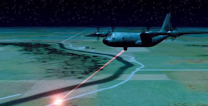 ATL系統(tǒng)安裝的是高功率COIL激光器,總重約6噸,其輸出功率為百千瓦級,激光作用距離為5~10千米,作戰(zhàn)高度為0~1500米,可進行 5~10次發(fā)射。作戰(zhàn)過程中,激光器從飛機腹部的一個直徑為127厘米的小孔向地面目標(biāo)發(fā)射直徑10厘米的激光束且能夠控制對目標(biāo)的破壞程度。#p#分頁標(biāo)題#e#