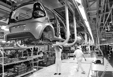 長安集團員工正在組裝汽車。長安集團將在昆明進行汽車整車、發(fā)動機研發(fā)制造。 (資料圖片)