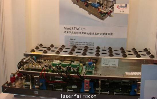 由于在大功率IGBT上有很大的優(yōu)勢(shì),英飛凌這次幾乎將一個(gè)風(fēng)電站搬到了會(huì)場(chǎng),現(xiàn)場(chǎng)展示了其最新ModSTACK平臺(tái),據(jù)介紹,這個(gè)平臺(tái)采用水冷方式,效率更高,可以用于大型風(fēng)電站,輸出功率達(dá)到2兆瓦!