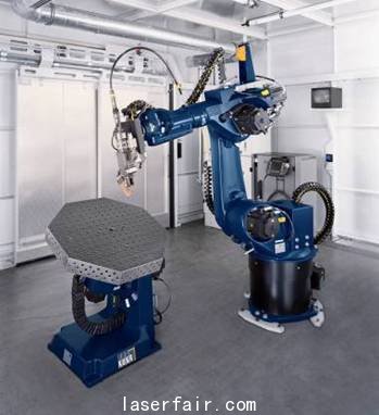 但是對于主要為機械制造配套的鈑金加工來說,往往面臨數(shù)量少,樣式多,結(jié)構(gòu)復雜的特點,則還是要采用常規(guī)的激光焊接方式-機器人帶動標準聚焦鏡頭,光束運動通過機器人運動來實現(xiàn)。如圖四所示。采用這種方式焊接不銹鋼,采用惰性氣體(一般為氬氣或氮氣)保護進行熱傳導焊接,可以得到非常光亮的焊接表面,一般情況下不需要打磨等后續(xù)環(huán)節(jié)。對于常規(guī)焊接,采用標準聚焦鏡頭,并不需要很好的光束質(zhì)量,目前最理想的用于常規(guī)激光焊接的激光器是直接二極管激光器。通快公司的2kW直接二極管激光器TruDiode2006光束質(zhì)量為30mm*mrad,插頭效率接近40%,二極管模塊采用被動冷卻方式,已經(jīng)不再是消耗品。目前在國內(nèi)外TruDiode激光器已經(jīng)成功應用于鈑金件的三維焊接。