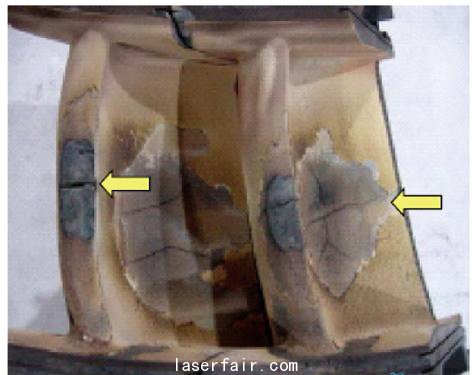 圖4采用LENS技術修復的黑鷹直升機發(fā)動機葉輪的葉片。修復位置為葉片的導向邊,導向邊極易受到磨損以及外來損害(FOD)。修復的部分具有近終型輪廓,且性能優(yōu)于原始材料的性能。經低周疲勞測試:在5000~50000r/min的循環(huán)應力作用下,承受了5000次交變應力無事故而通過測試。
