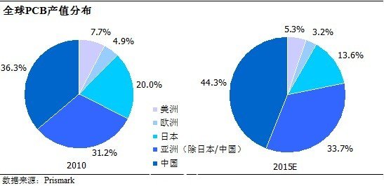 在中國(guó)成為電子產(chǎn)品制造大國(guó)的同時(shí),全球PCB產(chǎn)能也在向中國(guó)轉(zhuǎn)移,據(jù)CPCA統(tǒng)計(jì),不僅內(nèi)資 PCB制造企業(yè)加速擴(kuò)大產(chǎn)能,外資企業(yè)也同時(shí)加速向中國(guó)轉(zhuǎn)移、新增產(chǎn)能,國(guó)內(nèi)PCB行業(yè)投資始終火熱。從2006年開(kāi)始,中國(guó)就超過(guò)日本成為全球第一大 PCB制造基地,中國(guó)是全球PCB 產(chǎn)值最大、增長(zhǎng)最快的地區(qū),并已成為推動(dòng)全球PCB 行業(yè)發(fā)展的主要增長(zhǎng)動(dòng)力。根據(jù)Prismark的數(shù)據(jù),2010 年中國(guó)大陸PCB 產(chǎn)值達(dá)到185億美元,占全球PCB 總產(chǎn)值的36.3%。2006年~2010年,中國(guó)PCB產(chǎn)值的年均復(fù)合增長(zhǎng)率達(dá)到9.6%,遠(yuǎn)高于全球2.5%的水平。2008 年下半年起,受全球金融危機(jī)的影響,國(guó)外市場(chǎng)需求下降,我國(guó)的PCB 行業(yè)受到一定沖擊。但隨著近兩年外圍市場(chǎng)需求的回升和國(guó)內(nèi)國(guó)家經(jīng)濟(jì)刺激增長(zhǎng)政策的影響,中國(guó)的PCB 市場(chǎng)在2010年強(qiáng)勁增長(zhǎng)29.8%,預(yù)計(jì)到2015 年,中國(guó)大陸PCB 總產(chǎn)值可達(dá)到309億美元,占全球比例上升至44.3%。