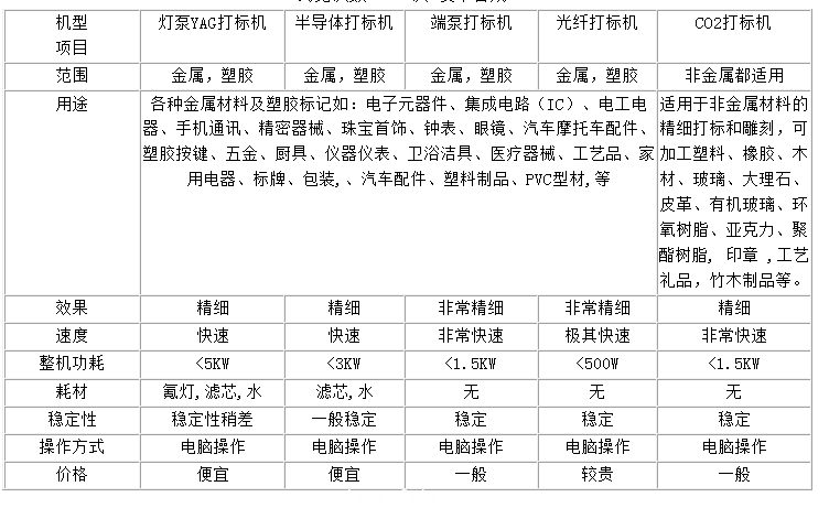 打標(biāo)機(jī)的機(jī)型比較