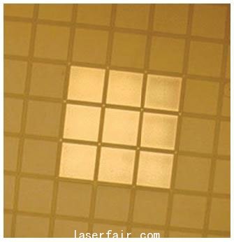 a圖4. 248nm激光脈沖對藍(lán)寶石上的氮化鎵進(jìn)行激光剝離(一個脈沖激光光斑一次覆蓋9個芯片)。