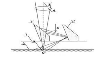 2次反射對(duì)Q’點(diǎn)的軋輥表面進(jìn)行預(yù)熱及強(qiáng)化(其離焦量設(shè)計(jì)是Q’的功率密度低于軋輥熔點(diǎn))。當(dāng)反射齒移開時(shí)。激光通過聚焦鏡4、透孔4聚焦到軋輥的表面Q點(diǎn)(在Q’點(diǎn)內(nèi))進(jìn)行融化,其功率密度在100kW/mm。以上,并在側(cè)吹氣6的作用下形成凸凹有序、硬度極高的毛化形貌。