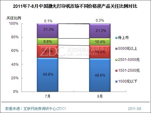 (圖) 2011年7-8月中國激光打印機(jī)市場不同價(jià)位段產(chǎn)品關(guān)注比例對(duì)比