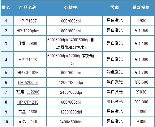 從產(chǎn)品排名看來,本月惠普的多款產(chǎn)品排名上升,壟斷了前五名中的四個(gè)席位。而聯(lián)想、三星和兄弟的上榜產(chǎn)品排名則相對(duì)靠后。