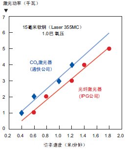光纖激光器切割在切割薄型金屬的時(shí)候,相比CO2激光器有明顯的速度優(yōu)勢(shì),如圖1所示。從圖2和圖3中可以看出,在所標(biāo)明的切割速度下,光纖激光器切割比CO2激光器所需要的功率要低,說明工件材料所吸收的光纖激光器光束更多,從而提高光纖激光器光束的融化速度。表1中呈現(xiàn)的是圖2和圖3光纖激光系統(tǒng)應(yīng)用中的規(guī)格。光纖激光器的速度優(yōu)勢(shì)在切割厚型金屬的時(shí)候并不明顯。對(duì)于較大的工件厚度(大于4毫米),光纖激光器切割速度下降到一個(gè)相當(dāng)于CO2激光器切割速度的水平。從本質(zhì)上講,光纖激光器切割大型厚工件的速度大幅下降,主要?dú)w因于光纖激光器輻射的吸收機(jī)制。金屬部件對(duì)光纖激光器輻射的吸收性在其厚度較小的時(shí)候達(dá)到最高值,隨之變厚時(shí)而下降;相反CO2激光器的輻射吸收性隨著加工金屬部件的厚度增加而增強(qiáng),在加工部件厚度達(dá)到最高的時(shí)候吸收性也隨之達(dá)到最高值。