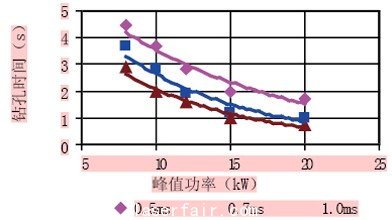 圖8 不同脈沖寬度時(shí)的鉆孔時(shí)間 (與表面成10角,JK704LD1,O2 輔助)