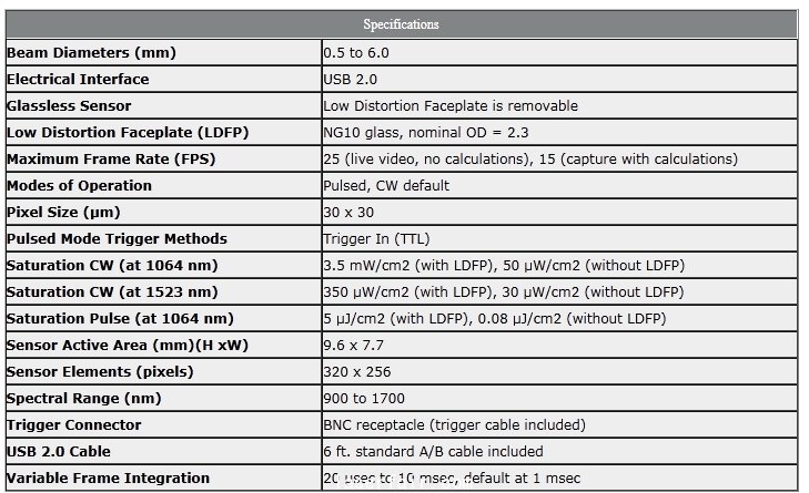 新的LaserCam™-HR-InGaAs相機與強大的BeamView™-USB軟件相匹配,在900~1700nm的范圍內(nèi)都表現(xiàn)出良好的性能。