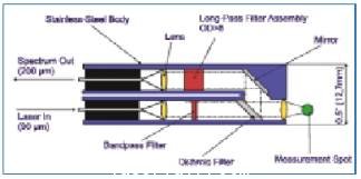用于在線檢測的3/8” 不銹鋼工業(yè)用探頭(包括100微米激發(fā)光纖,200微米讀出光纖),可承受500℃高溫和3000psi氣壓。該探頭可完全濾掉背景光。