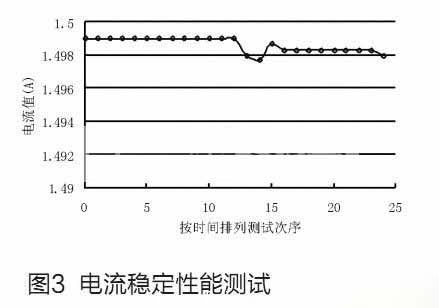 開(kāi)機(jī)后激光器預(yù)熱半小時(shí),通過(guò)軟件設(shè)定方式調(diào)節(jié)激光器的工作電流至1.5A,激光器啟動(dòng)系統(tǒng)運(yùn)行,工作電流平穩(wěn)上升達(dá)到1.5A,動(dòng)態(tài)響應(yīng)時(shí)間在1.5~2s之間。系統(tǒng)輸出電流為1.5A,連續(xù)工作4小時(shí),每間隔10分鐘記錄1次電流,按照時(shí)間排列測(cè)試次序和相應(yīng)的電流值。測(cè)試結(jié)果數(shù)據(jù)描繪曲線見(jiàn)圖3。結(jié)果表明系統(tǒng)的控制電流穩(wěn)定,誤差小。測(cè)試結(jié)束后關(guān)閉激光器,系統(tǒng)逐步減小輸出電壓信號(hào),降低輸出功率至零后激光器停止工作。結(jié)果表明,采用數(shù)字控制方案的電源達(dá)到激光器的穩(wěn)態(tài)精度要求。#p#分頁(yè)標(biāo)題#e#